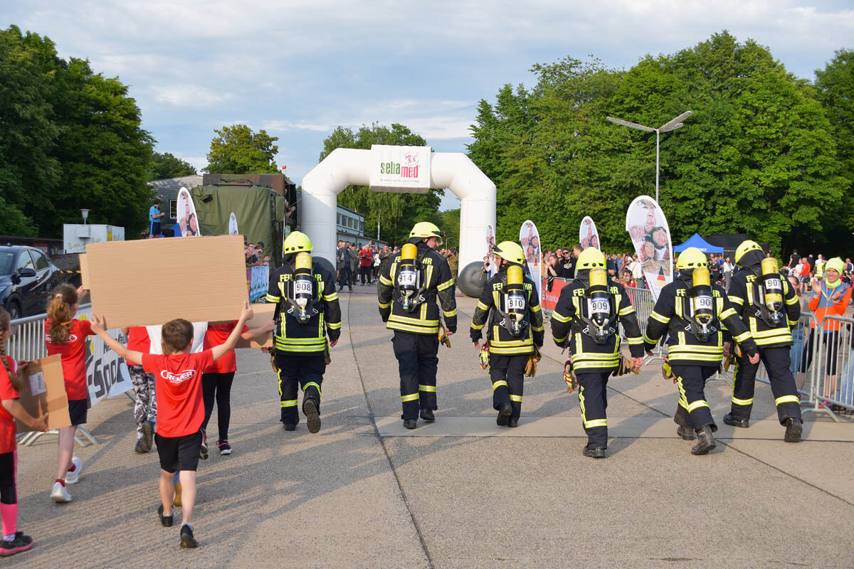 Entsprechend breit aufgestellt und vielfältig präsentierten sich die Starterfelder, die sich pünktlich ab 18:00 Uhr in den verschiedenen Wettbewerben auf die schnelle Wendepunktstrecke begaben. Für ein besonderes Highlight sorgte beispielsweise die Freiwillige Feuerwehr aus Macken, die sich mit voller Montur und Ausrüstung auf die 5.000-Meter-Walkingstrecke begab und von ihren zahlreichen kleinen Fans sowie dem Publikum begeistert angefeuert wurde. Optimale Voraussetzungen für den Abend bot nicht nur das perfekte Laufwetter. Dank der hervorragenden Organisation durch den KAS-Arbeitskreis Kastellaun um Stabsfeldwebel und KAS-Vorstandsmitglied Andreas Schmidt sowie den vielen helfenden Händen am Standort war rund um die Laufveranstaltung für alles bestens gesorgt.