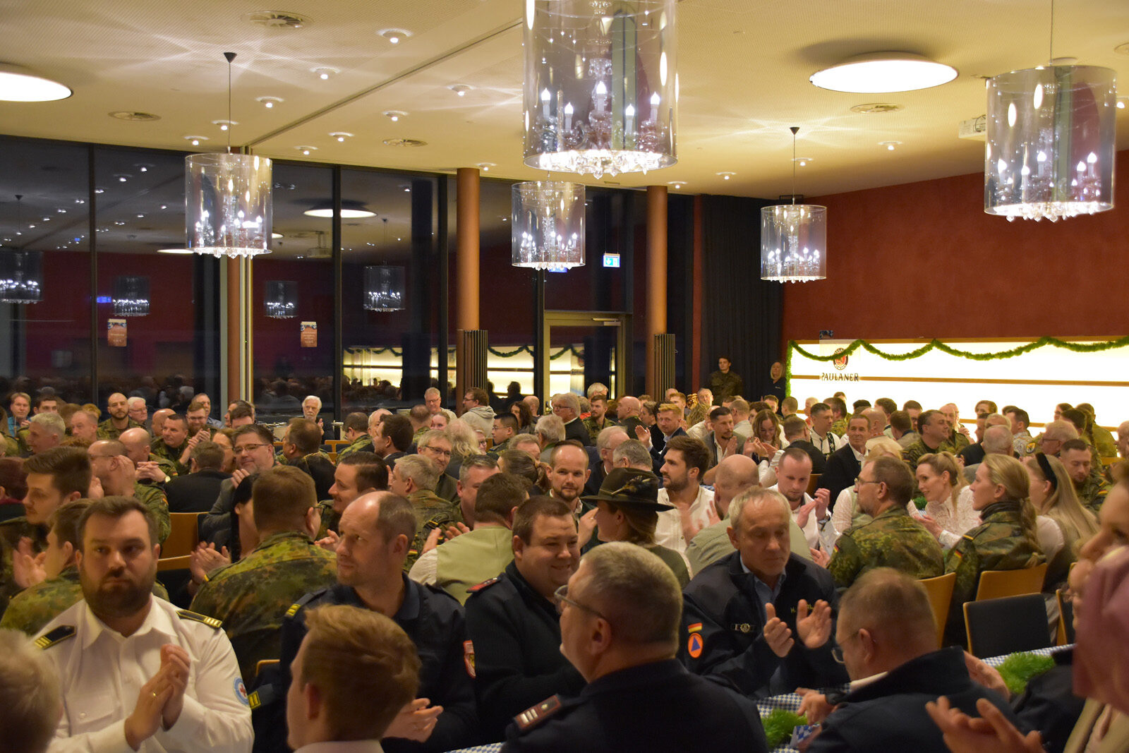 So konnte Oberstleutnant Tobias Fürst als Standortältester in seiner Eröffnungsrede unter anderem den Bundestagsabgeordneten Stephan Stracke, seinem Landtags-Kollegen Andreas Kaufmann, den Kommandeur der Divisionstruppen der 10. Panzerdivision und Stellvertretenden KAS-Vorsitzenden, Brigadegeneral André Abed, den Stellvertretenden Landrat des Landkreises Ostallgäu und Bürgermeister von Obergünzburg, Lars Leveringhaus, den Prinzen Hubertus von Thurn und Taxis sowie zahlreiche weitere Bürgermeister und Vertreter von Bundeswehr und Blaulichtorganisationen begrüßen.
