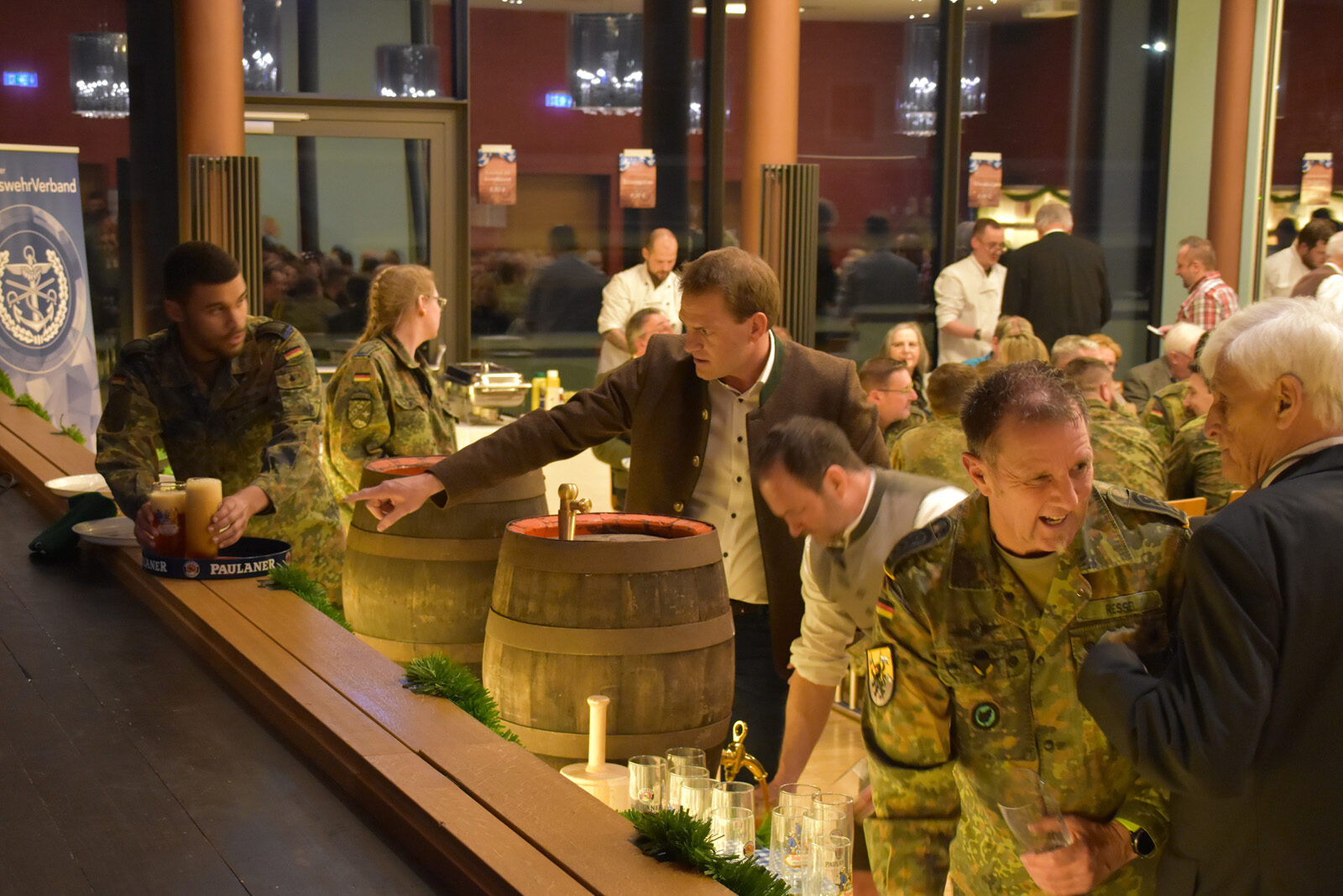 Nach den Eröffnungsreden wurde Brigadegeneral Abed die Ehre zuteil, das erste Salvator-Holzfass aus der Paulaner Brauerei anzuzapfen. Mit drei gekonnten Schlägen und unter dem Beifall der Gäste leitete er einen stimmungsvollen Abend ein, der ganz im Zeichen des gemütlichen Austausches und der Geselligkeit stand.