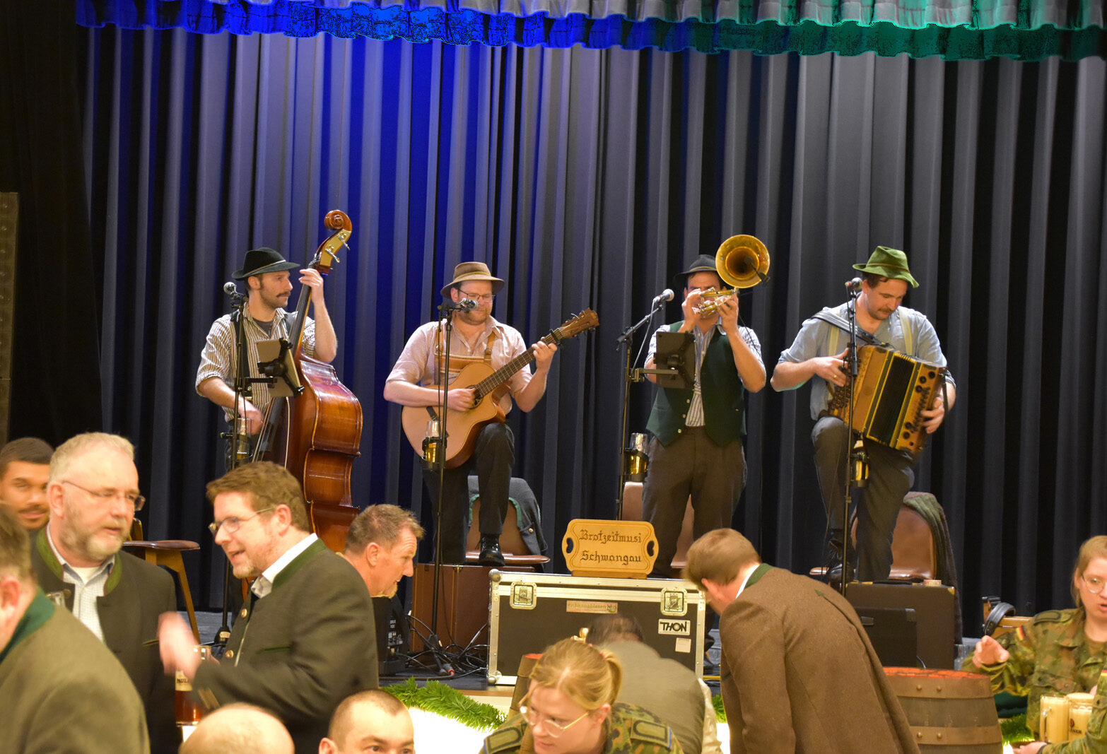 Für die besondere Atmosphäre und eine dem Anlass überaus angemessene musikalische Begleitung des Abends sorgte das Quartett der „Brotzeitmusi Schwangau“ mit heimatlichen und beschwingten Klängen. Dabei ließen sie mit einem „Prosit der Gemütlichkeit“ immer wieder die Stimmung aufleben und nahmen die Gäste mit auf eine Reise frischer Interpretationen traditioneller bayerischer Blas‑, Stuben‑ und Volksmusik.