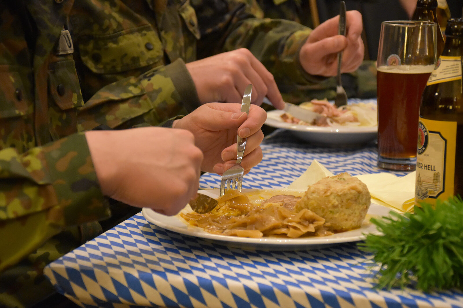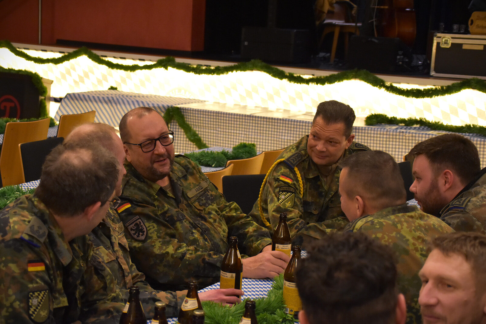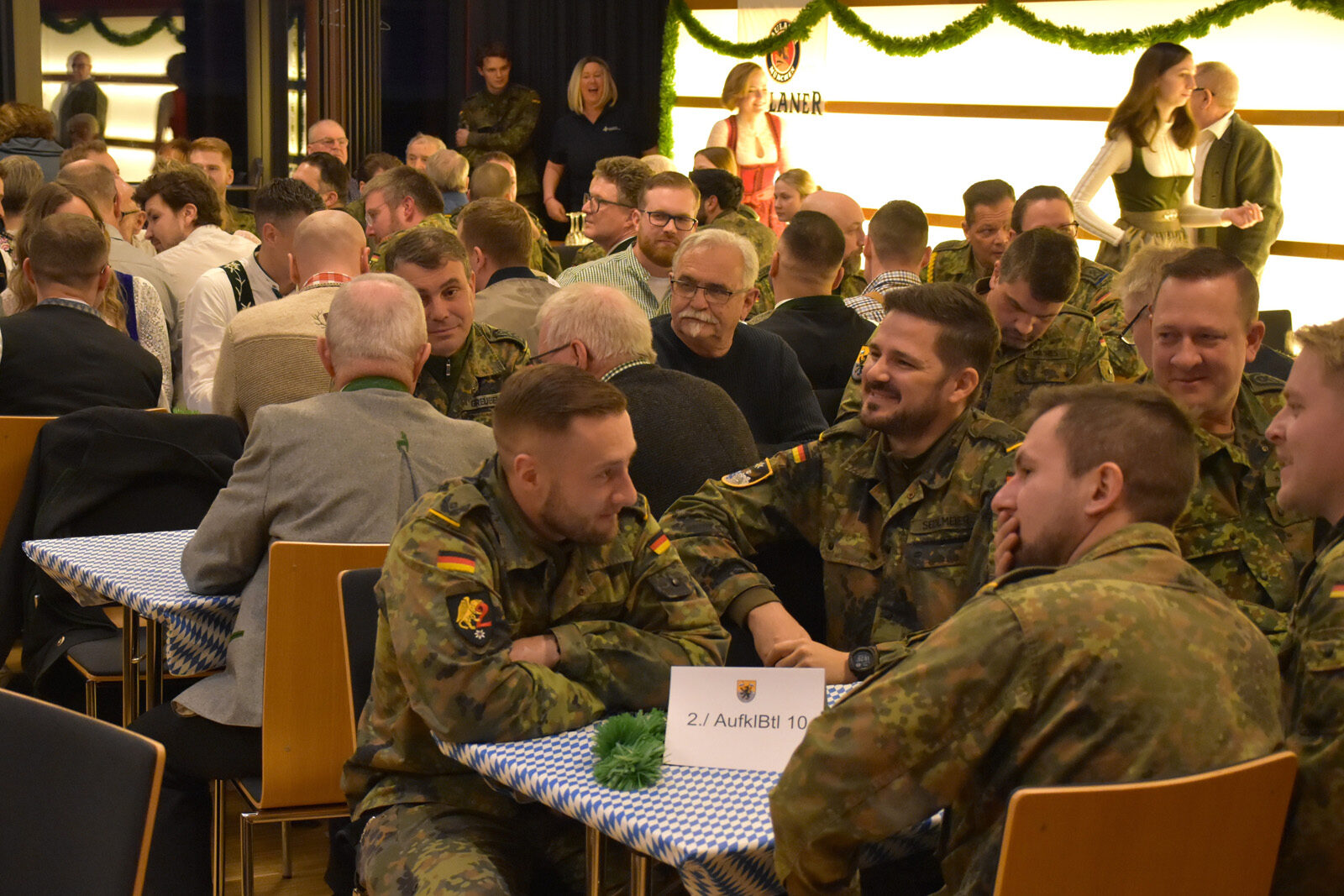 Der traditionelle Starkbieranstich des Bundeswehrstandortes in Füssen zum Auftakt in die Fastenzeit zählt bereits früh im Jahr zu den Höhepunkten im Veranstaltungskalender unserer OASE – Haus der Gebirgsjäger. Auch in diesem Jahr fanden am 19. Februar – auf Einladung des Versorgungsbataillons 8, des Aufklärungsbataillons 10, der Gebirgsaufklärungskompanie 23 und des Sanitätsversorgungszentrums Füssen – weit mehr als 200 Gäste im festlich geschmückten Saal der OASE zusammen, um der Eröffnung der Starkbierzeit beizuwohnen.
