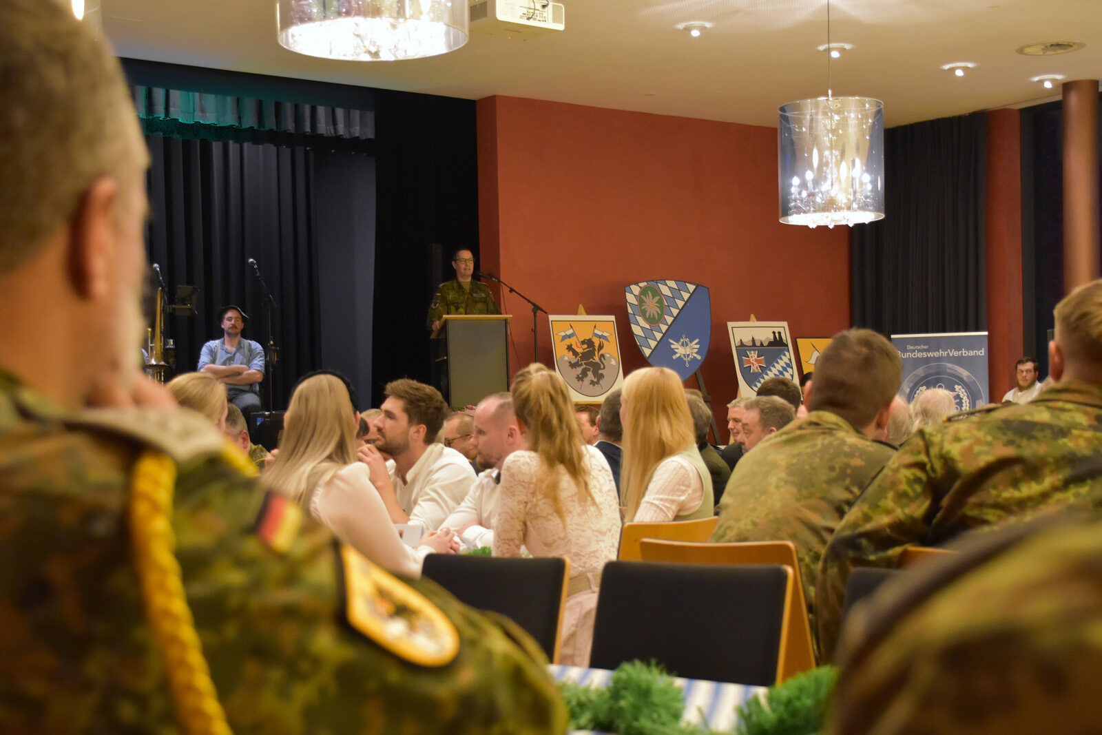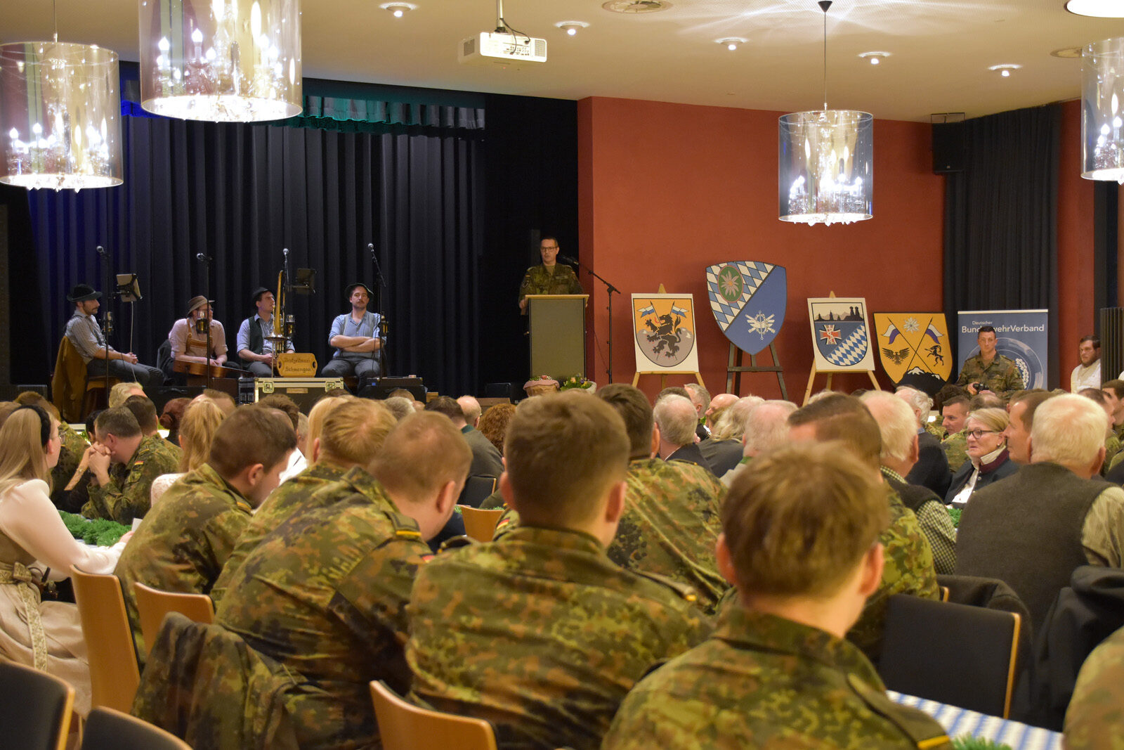 Darüber hinaus stimmte er die Gäste auf den Abend ein und dankte den Vertretern aus dem zivilen Bereich für ihre Verbundenheit mit der Bundeswehr. Besondere Worte des Dankes richtete der Erste Bürgermeister der Stadt Füssen, Maximilian Eichstetter, im Anschluss an das Leitungsteam der OASE, Martina Nickles und Katharina Simmel, für ihr großes Engagement und die gelebte Gastfreundschaft des Hauses.